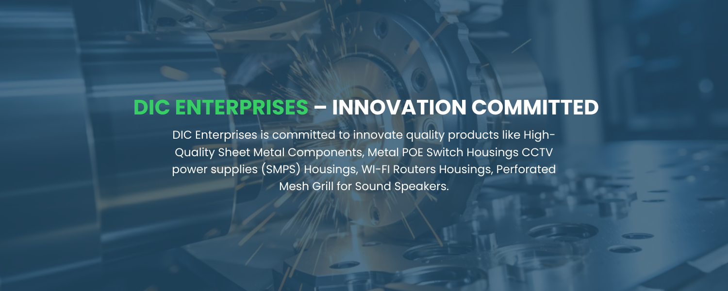 DIC Enterprises has expanded into high-demand products such as Sheet Metal Components, Metal POE Switch Housings, CCTV power supplies (SMPS) Housings, WI-FI Routers Housings, Perforated Mesh Grill for Sound Speakers.. These products cater to emerging industries like Automotives, Electronics, Surveillance and Security systems, and Audio equipment.